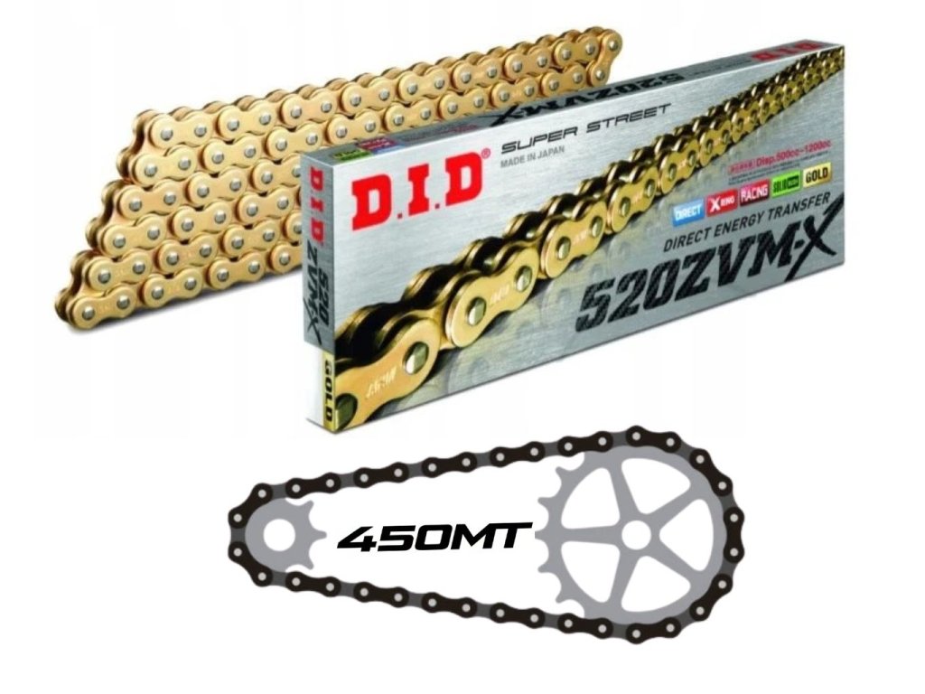 Řada ZVM-X značky D.I.D. má větší pevnost a je určena pro těžké motocykly s velkým točivým momentem a výkonem. Kroužek X-Ring® zvyšuje jeho výkon a jeho čtyři kontaktní body naopak minimalizují ztráty.