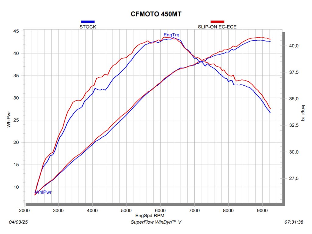 Plně homologovaný (EC/ECE, Euro 5+), takže žádné drama na STK ani s policií. Navíc bez jakéhokoliv vlivu na prodlouženou 5letou záruku motocyklu CFMOTO 450MT. Namontujete, nastartujete, jedete.