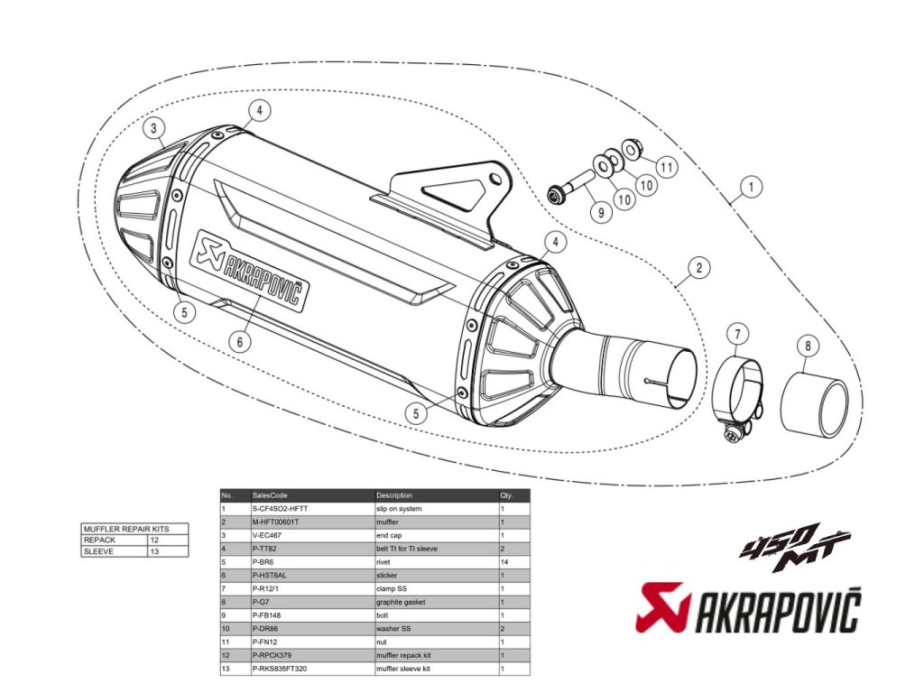 450MT výfuk Akrapovič CFMOTO slip‑on