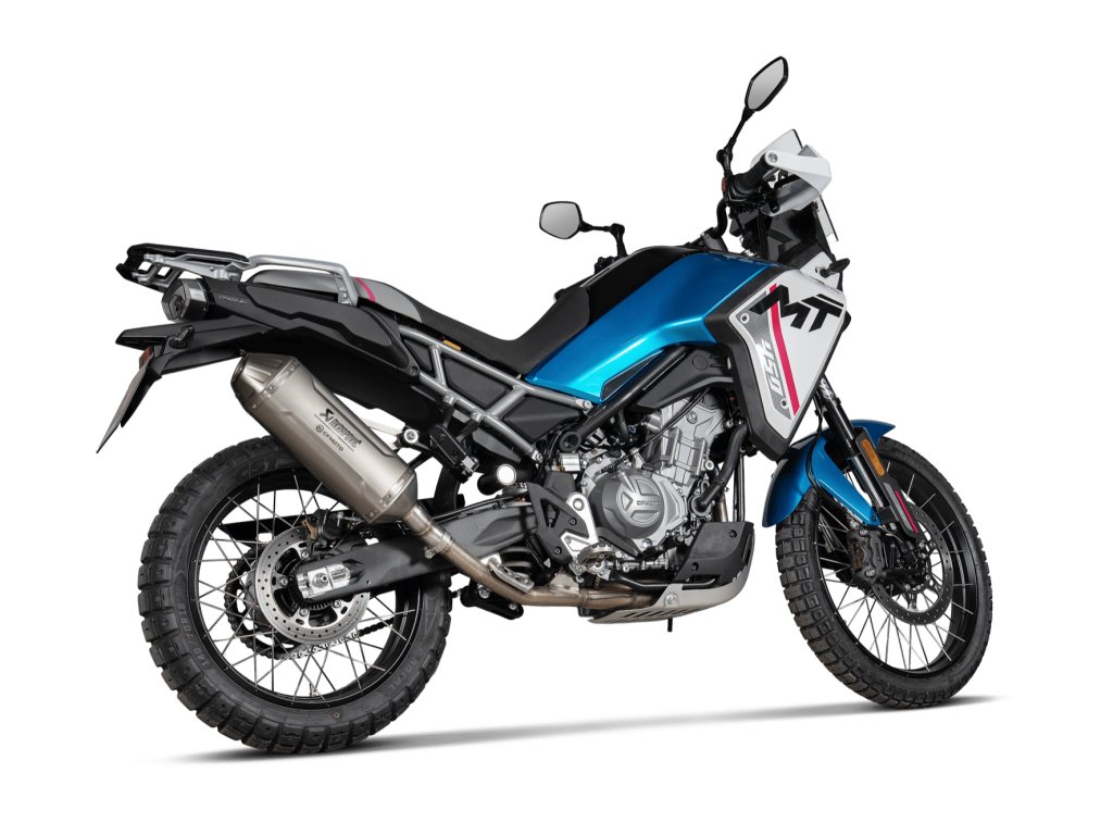 Výfuky Akrapovič určené pro motocykly CFMOTO jsou originálním příslušenstvím vyvíjeným přímo pro konkrétní modely. Díky tomu perfektně sedí, splňují homologaci EC/ECE (Euro 5+) a nemají žádný vliv na prodlouženou pětiletou záruku CFMOTO.