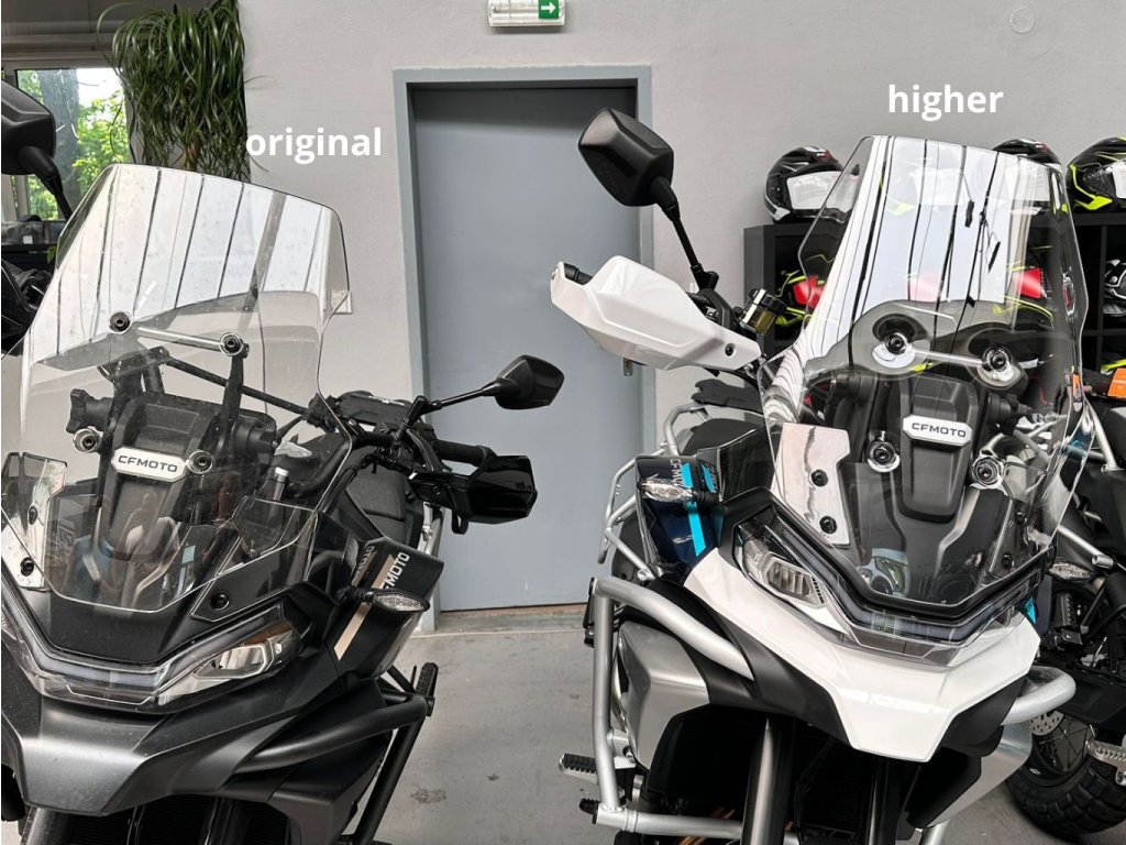 O 7 cm vyšší a o 4 cm širší čiré plexi pro motocykl CFMOTO 700MT Adventure z originálního příslušenství CFMOTO. Navrženo pro maximální ochranu jezdce před větrem a deštěm, aniž by bylo omezena viditelnost nebo styl motocyklu. Vyrábí se z kvalitního akrylu o tloušťce 4 mm, který je odolný vůči poškrábání a UV záření. Jednoduchá plug-and-play instalace využívá stávající montážní body, bez nutnosti úprav kapotáže.