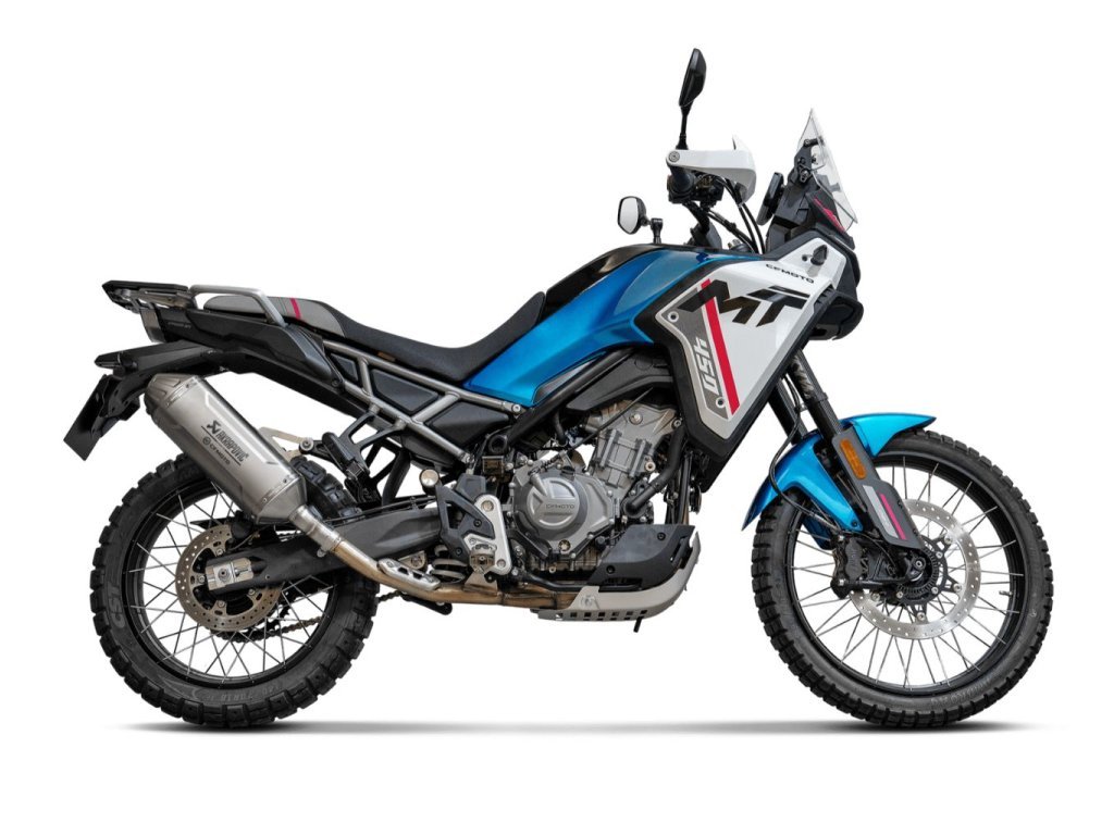 3. 450MT výfuk Akrapovič CFMOTO slip‑on - laděná koncovka výfuku značky Akrapovič. Dodává na sytosti průběhu výkonu, špičkový sportovní zvuk! Pozn. pokud nejste příznivci koncovek výfuků, objednejte si Power Kit bez výfuku, tzn. samostatně systém sání a mapu. Můžete si užívat vyšší výkon i tak, v celkovém výsledku má na Power Kit koncovka výfuku nejnižší vliv na výkon.