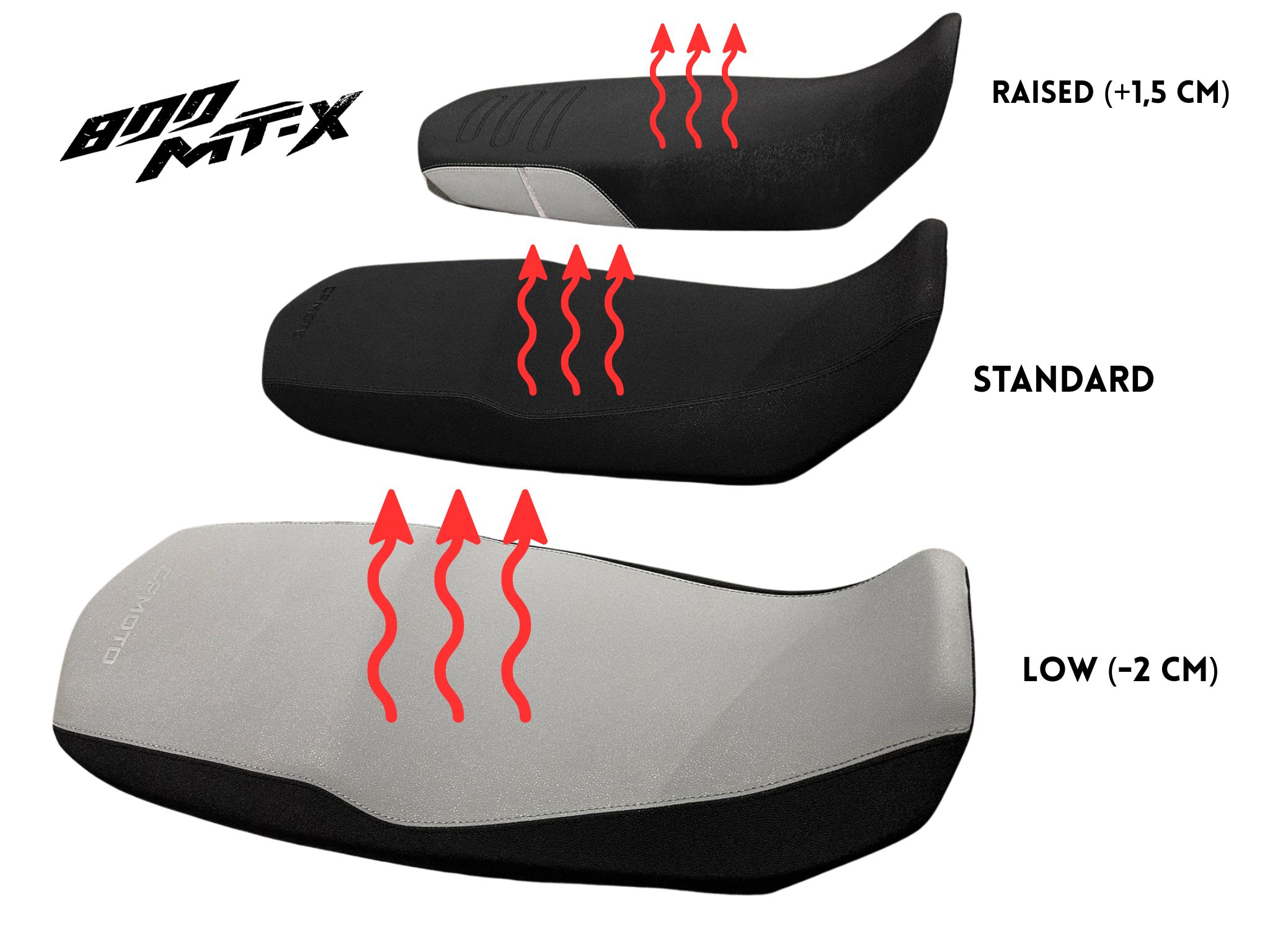 You can choose from a total of three variants of the CFMOTO 800MT-X heated seats: