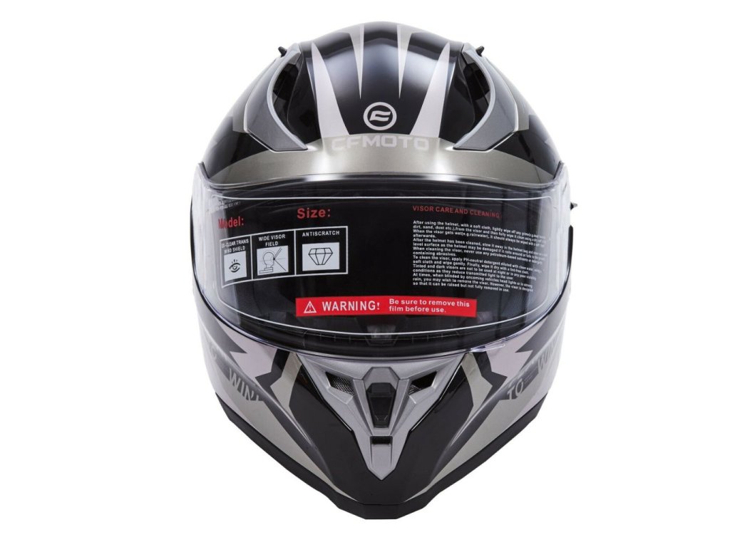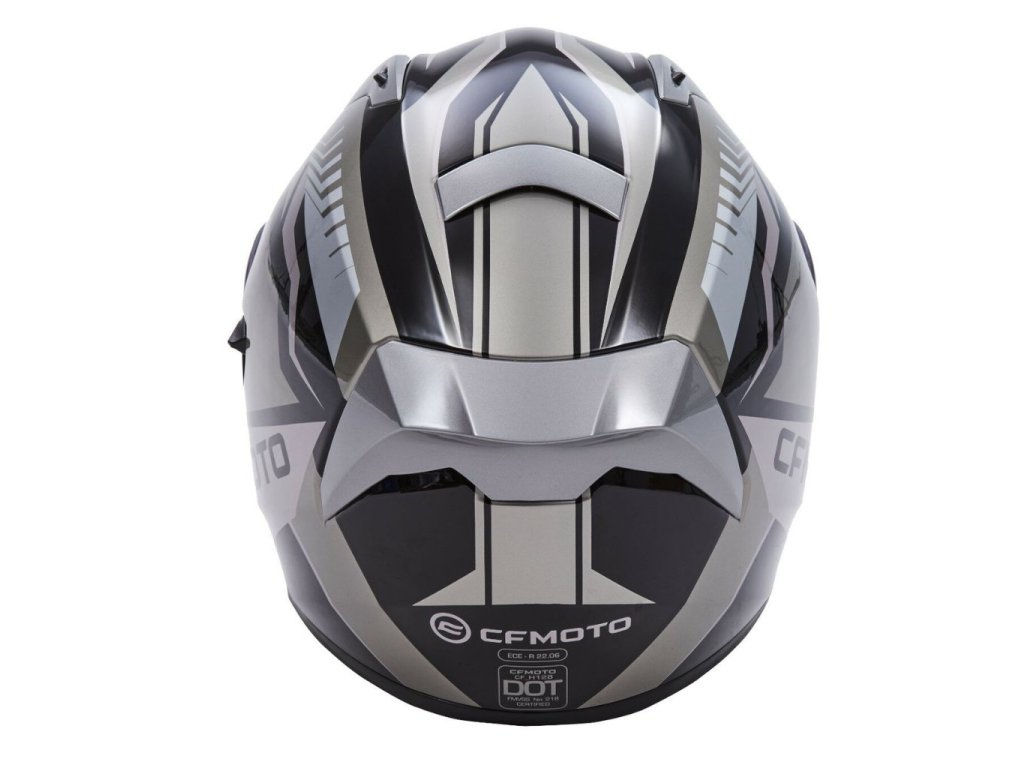 Moderní integrální přilba CFMOTO splňující nejnovější bezpečnostní normu ECE 22.06. Navržená pro silniční i sportovní jízdu, kde je prioritou maximální ochrana, stabilita ve vyšších rychlostech a celodenní komfort. Aerodynamický tvar omezuje hluk a odpor vzduchu, integrovaná výklopná sluneční clona chrání zrak při ostrém světle a umožňuje rychlou reakci na měnící se podmínky bez nutnosti výměny plexi.