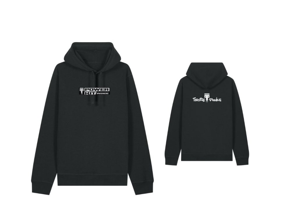 Tohle není obyčejná mikina. Stejně jako náš Power Kit nedává jen víc decibelů ale mění celej zážitek z jízdy, i tahle hoodie je manifest. Na hrudi nese hrdý „Power Kit Inside“ – jasnej signál, že patříte k lidem, co ví, že výkon se nerodí z náhody, ale z chytrýho poladění stroje a pořádný práce v garáži.