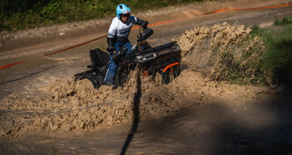 Celkově je cítit, že GOES Terrox má co dočinění s CFMOTO Gladiator. A kdo je tu evropským lídrem ve čtyřkolkách, asi nemusíme dvakrát opakovat. Každý rok přijde CFMOTO s progresívními novinkami a vychytávkami a prostě udává směr. Tak to je. Ale k věci: světlá výška 312 mm a překvapivě jistý pocit v rychlejším terénu. Poznáte každou ztrátu trakce, takže se dá reagovat včas. Brzdy? Účinné, dávkovatelné, žádné „zapnuto/vypnuto“ jako u jiných hraček.