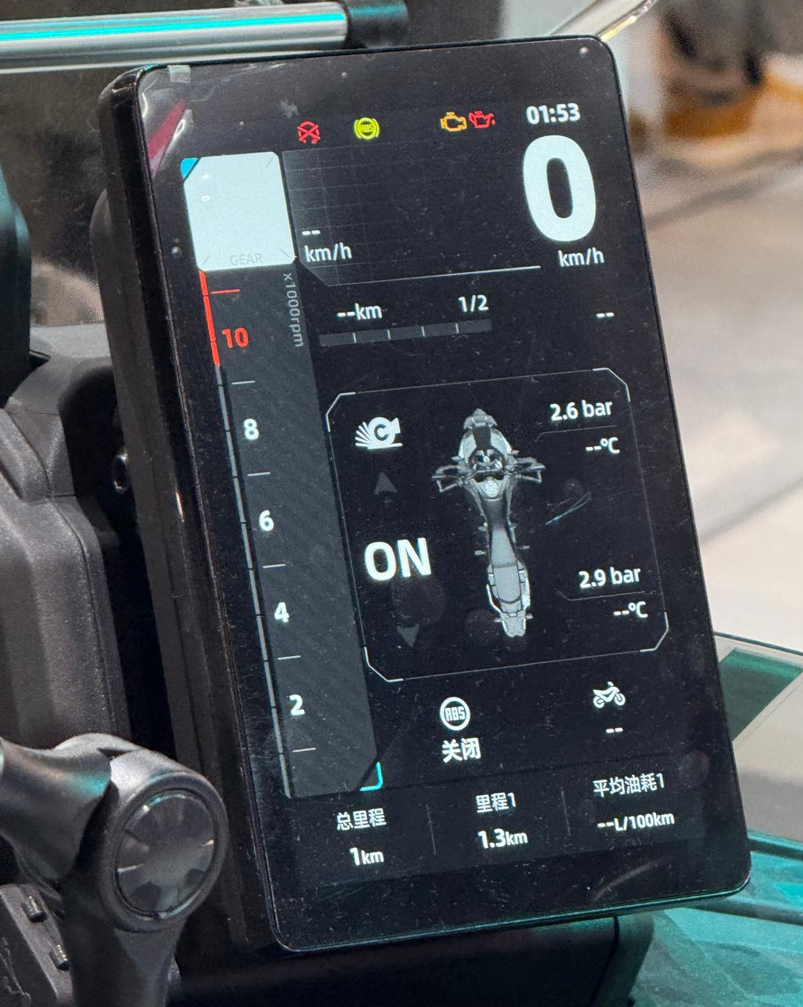 O level výš půjde i přehlednost. Nový 8″ displej má modernější grafiku a samozřejmě plnou integraci s aplikací CFMOTO. Díky ní budete mít kdykoli přístup k poloze motorky, detailním jízdním datům, informacím o stylu jízdy a dalším údajům, které vám buď udělají radost… nebo vám řeknou, že jste při poslední vyjížďce možná trochu hrábli víc, než bylo zdrávo .-)