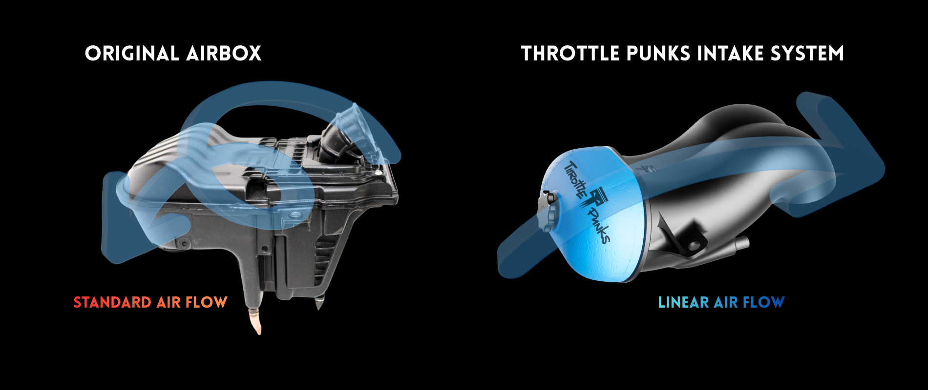 1. sportovní systém sání (Intake System) – díky optimalizovanému tvaru pouští víc vzduchu do motoru. Proudění vzduchu je lineárnější a vzniká menší odpor.