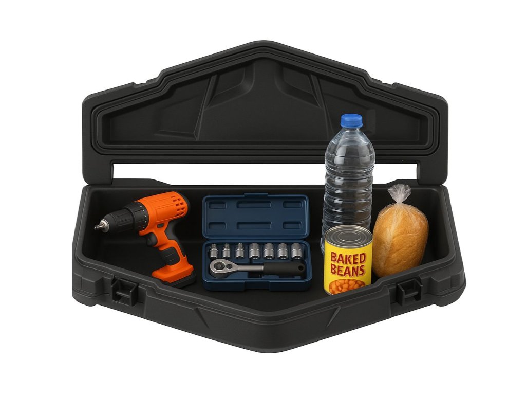 Elegantně padnoucí přední box značky Tesseract navržený speciálně pro CFMOTO Gladiator X625/X625‑A. Praktické úložistě pro menší věci na servis (např. aku vrtačka, gola sada, klíče, pumpa), jídlo a pití (konzervy, PETky, energy tyčinky), nepromoky nebo bunda složená do balíčku, lékárnička a survival vybavení atd.