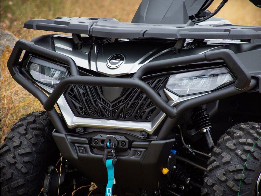 Nová generace předního ochranného rámu pro CFMOTO GLADIATOR X625 a X625-A posouvá ochranu i vzhled na vyšší level. Jde o originální příslušenství CFMOTO, které přesně pasuje a nahrazuje základní menší rám z výroby. Rám spolehlivě chrání přední část stroje včetně světlometů před nárazy, větvemi a dalšími nástrahami terénu. Zároveň dodává čtyřkolce modernější a robustnější vzhled, který k pořádnému stroji prostě patří.